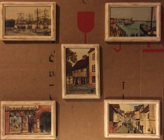 Hier meine Flensburger Bilder : Außer den unten gezeigten gibt es noch: Flensburg aus der Vogelperspectieve 150x75 cm, Alter Winkel am Mühlenstrom 140x90 cm, Ecke Töpferstr. 140x90 cm, Klostergang 140x90 cm, Alter Hof am Holm 140x90 cm, Kaiserliches Post und Thelegraphenamt 140x90 cm. Von den unten genannten Miniaturen besitze ich noch 96 Stück.