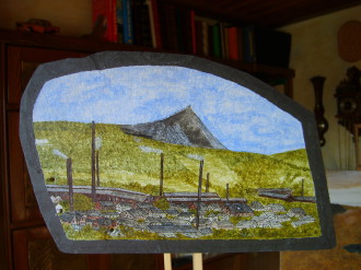 Diese Teile sind von hinten in 10 mm Glas graviert und ausgemalt, dann ist die ganze Scheibe von unten durchleuchtet, der entsprechende Rahmen gehört dazu. Bildgröße 18x28 cm , Rahmen 55x40 cm