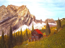 Otto-Mayr-Hütte in den Tannheimer Bergen, Öl auf Leinen ca. 40x60 cm