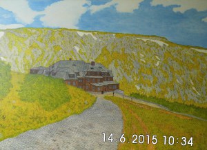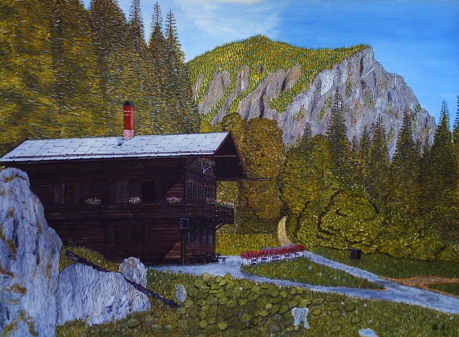 Die Hampelbaude im Riesengebirge, Öl auf Leinen 60x90 cm
